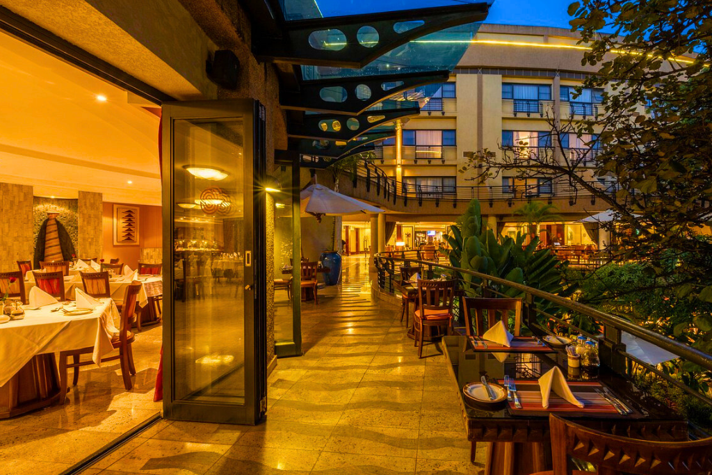 Kigali Serena Hotel features a graceful blend of Rwandan cultural aesthetics and contemporary architectural design. Its structure showcases elegant façades, warm earth-toned finishes, and lush courtyards. Thoughtfully designed interiors with local artistry, modern comforts, and panoramic views create a serene, upscale atmosphere in the heart of Rwanda’s capital.