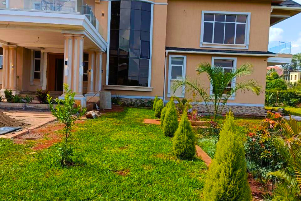 This elegant residence in New Muthaiga, Nairobi, showcases contemporary architecture with a grand pitched roof, clean symmetry, and refined detailing. Its design features expansive balconies with glass balustrades, columned entrances, and large windows that enhance natural light. The structure blends luxury, functionality, and timeless appeal in a prestigious setting.